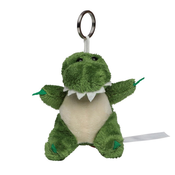 Met uitgestrekte armen, zoals alle dieren van onze dierenparade, vraagt de kleine versie van onze Jonas om knuffelen! Het groene arsenaal heeft een beige buik en een grijns die zijn prachtige, scherpe, helderwitte tanden laat zien. Maar maak je geen zorgen, hij wil alleen maar knuffelen en het is een grappig kereltje dat graag knuffelt en knuffelt - dankzij het zachte pluche pluche - en dankzij de sleutelhanger altijd mogelijk is onderweg!