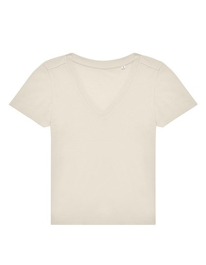 100% voorgekrompen ringgesponnen katoen | Single jersey | Klassieke moderne pasvorm | Met zijnaden | Vrouwelijke hals met versterkte V | Nekband op de rug voor een strakke afwerking | Voorste schoudernaden | Geen label | Bestand materiaal en zacht handgevoel