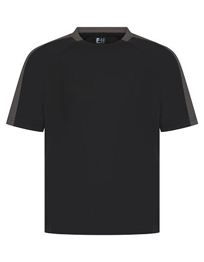 Single jersey | Afvoerende afwerking op stof | 2-delige contrasterende kraag | Ronde halsuitsnijding | Raglan mouw | Contrasterende zijpanelen uit dezelfde stof op de mouw | Afscheurbaar label