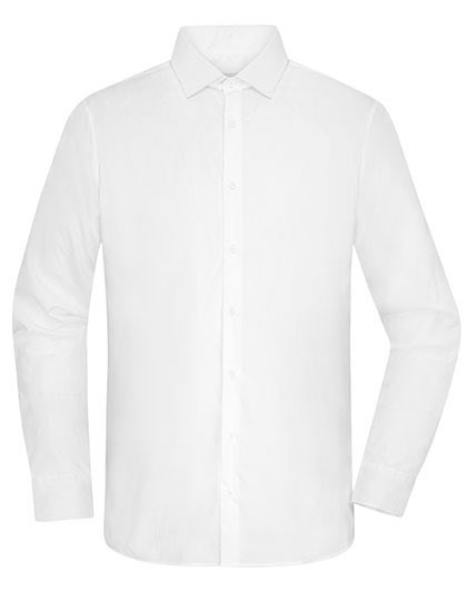 Fijne, rekbare, EASY-CARE popeline stof | Aangename mix van materialen uit katoen, polyamide en elastaan | Gebogen zoomlijn | Dubbellaags schouder- en achterstuk | Kent-kraag met afneembare staafjes, verstelbare manchetten