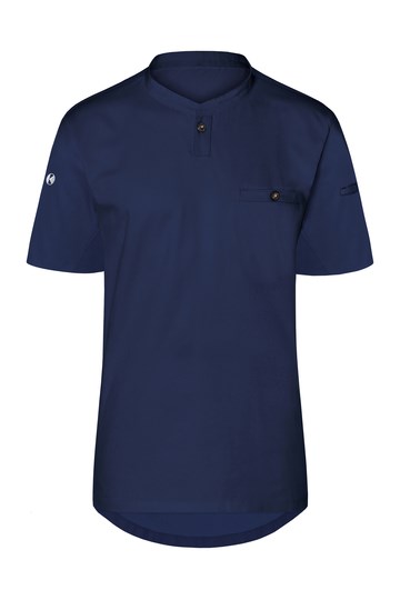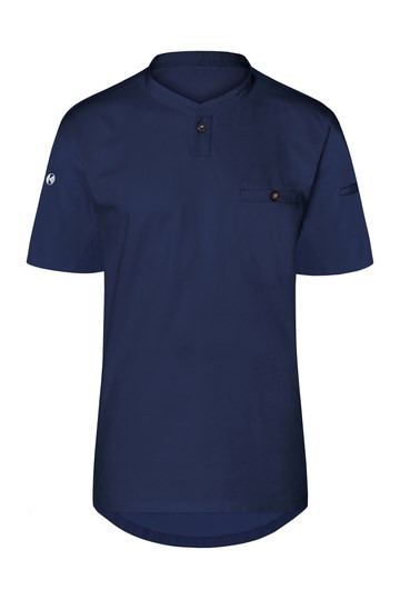 Voorkant: keper; achterkant: jersey piqué, ademend en vochtafvoerend | Modern werkhemd met korte...meer