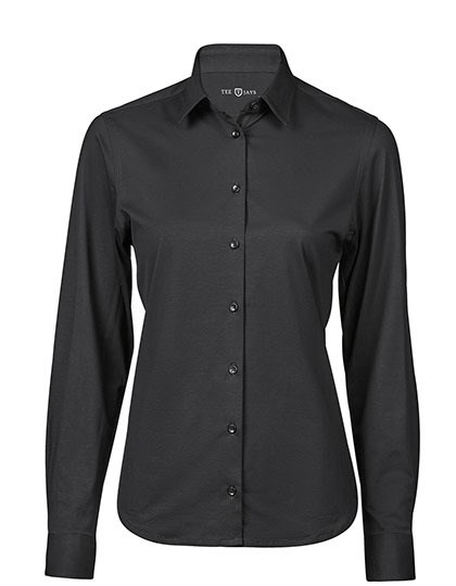 Stretch in vier richtingen | Getailleerde pasvorm | Wijde kraag | Modern gevormde manchetten | Ingezet stuk in achterpand | Makkelijk in onderhoud
