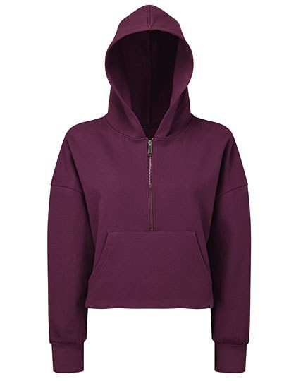 Oversized sweatshirt met capuchon en glanzende halve rits bij de hals | Kangoeroezakken aan de voorkant | Geribde manchetten met duimgaten | Paneel aan de achterkant met gebogen zoom die doorloopt naar de voorkant | Geborstelde fleece binnenkant