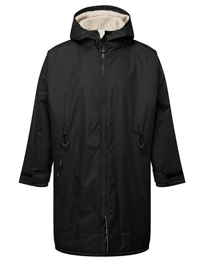 Unisex | Oversized | Doorlopende tweeweg plastic ritssluiting met gemakkelijk te bedienen schuifknopen | Kinbescherming | Oversized pasvorm | Ventilatieopeningen aan de zijkant | Verstelbare manchetten met klittenbandsluiting | Zijzakken met ritssluiting | Binnenzak met ritssluiting aan de linkerkant | Binnenzak met opstikzak aan de rechterkant | Capuchon met 3 panelen | Lus aan de achterkant van de jas om de badjas op te hangen | Verlengde achterkant | Toegang tot borduursel aan de achterkant, borstgebied is ook hier toegankelijk | Waterdichte buitenlaag met getapete naden | Sherpa fleece binnenkant | Rebrandle opbergzak met dubbele trekkoorden