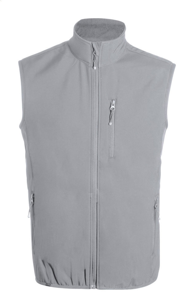 Ademend, water- en winddicht RPET softshell bodywarmervest met ritssluiting, borst- en zijzakken. Buitenkant: 92% RPET polyester en 8% elastaan. Binnenkant: 100% RPET polyester microfleece. 300 g/m².