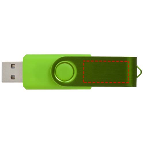 Alle bestanden bij de hand hebben en de naamsbekendheid vergroten is eenvoudig met de Rotate Metallic USB flash drive. De plastic flash drive heeft een 360 graden draaibare aluminium behuizing, waardoor de USB flash drive gemakkelijk open en dicht gedraaid kan worden en vuil uit de USB poort wordt gehouden. Daarnaast zorgt de 'tone on tone' metallic afwerking ervoor dat de USB flash drive extra in het oog springt. Met het haakje aan de behuizing kan de gebruiker een sleutelhanger bevestigen (niet meegeleverd). Deze USB flash drive is verkrijgbaar in een breed scala aan capaciteiten, maten en kleuren.