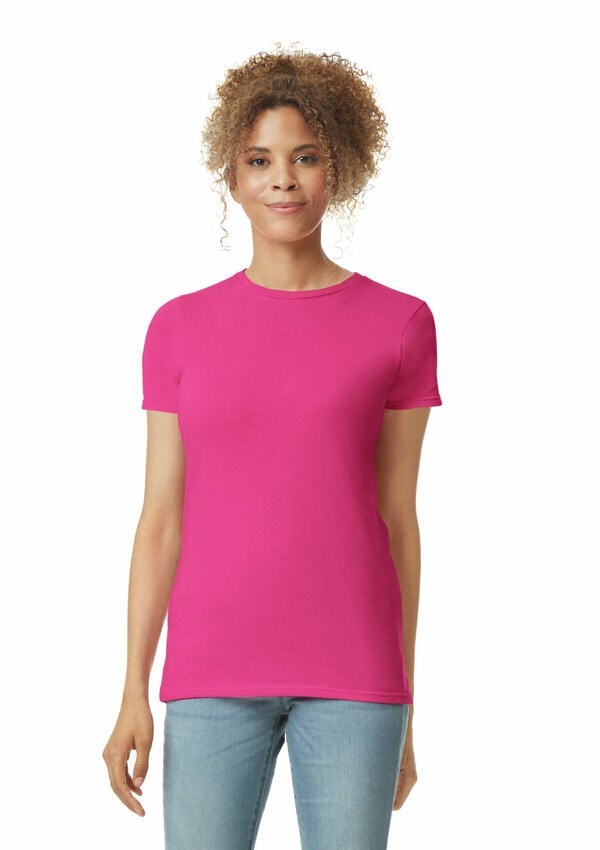 Gildan Softstyle dames T-shirt met korte mouw. De mooie pasvorm en goede prijs/kwaliteitverhouding maakt dit tot een perfect promotie shirt. ideaal voor DTG door de hoge steekdichtheid wat zorgt voor een glad printoppervlak.