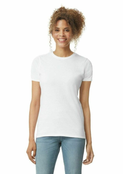 Gildan Softstyle dames T-shirt met korte mouw. De mooie pasvorm en goede prijs/kwaliteitverhouding maakt dit tot een perfect promotie shirt. ideaal voor DTG door de hoge steekdichtheid wat zorgt voor een glad printoppervlak.