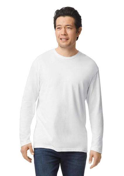 Gildan Softstyle unisex T-shirt met lange mouw. Het materiaal heeft een hoge steekdichtheid die een glad printoppervlak biedt, ideaal voor DTG.