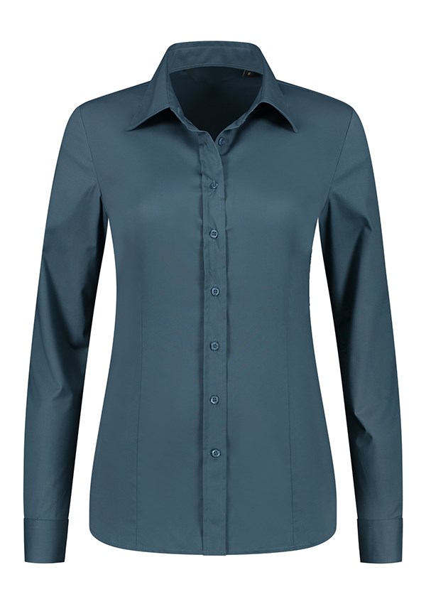 Lemon & Soda Stretch overhemd met lange mouwen voor dames. Het overhemd is gemaakt in een poplin mix kwaliteit van katoen, polyester en spandex. Om het overhemd de juiste uitstraling van het bedrijf te geven kan deze gepersonaliseerd worden door een bedrukking of borduring op de blouse te plaatsen.