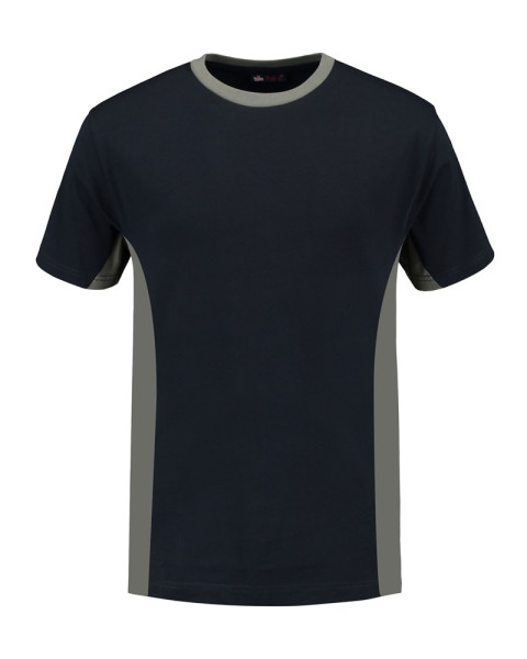Lemon & Soda workwear unisex T-shirt met korte mouwen en ronde hals. Contrast kleuren bij de halsopening enzijkanten van het T-shirt. Behandeld met een bio-wassing voor extra glad oppervlakte.