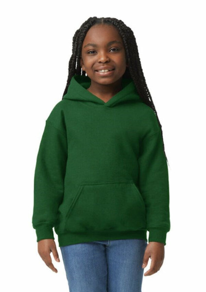 Gildan HeavyBlend Sweater met capuchon met buidelzak voor kinderen in de maten 104 t/m 176. Een populaire hoodie dankzij de uitstekende prijs-kwaliteitverhouding. Het verwerkte katoen in de sweater is van gecertificeerd U.S. Cotton. Het voldoet aan de CPSIA-vereisten.