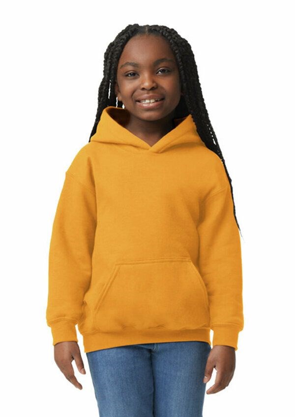 Gildan HeavyBlend Sweater met capuchon met buidelzak voor kinderen in de maten 104 t/m 176. Een populaire hoodie dankzij de uitstekende prijs-kwaliteitverhouding. Het verwerkte katoen in de sweater is van gecertificeerd U.S. Cotton. Het voldoet aan de CPSIA-vereisten.