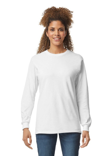 Gildan Ultra Cotton unisex T-shirt met lange mouw. Dit T-shirt is in een uitgebreid kleurenpalet, waardoor het een geweldige keuze is voor dagelijks gebruik en op het werk.Het katoen wat in het shirt is verwerkt is van gecertificeerd U.S. Cotton.
