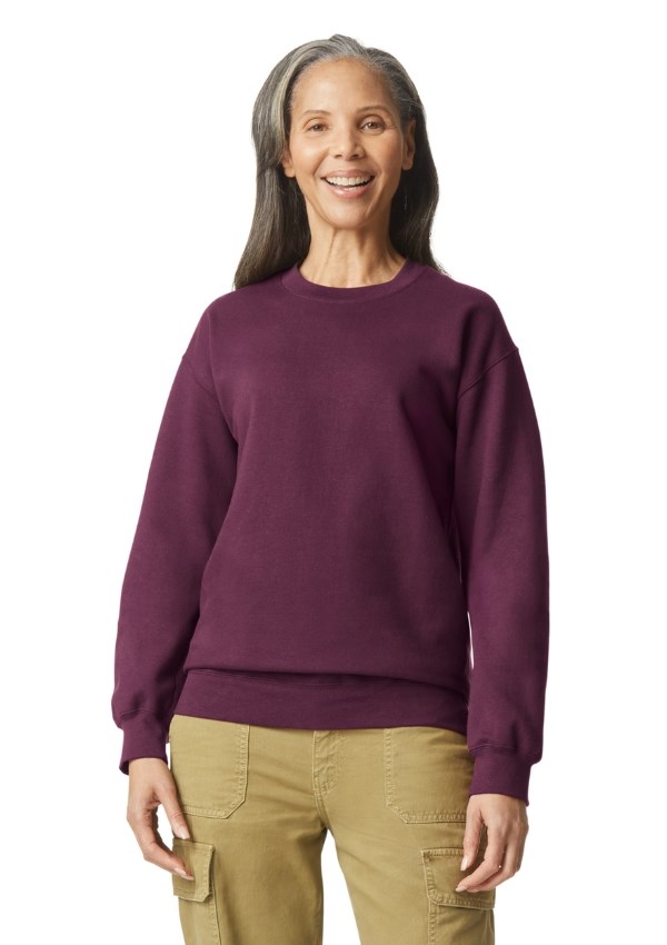 Gildan Softstyle Mid-Weight Unisex Sweater met ronde hals van zachte ringgesponnen katoenmix. De Softstyle Midweight Fleece heeft een geborstelde binnenkant met een 100% katoenen buitenkant, ideaal voor DTG-printen.