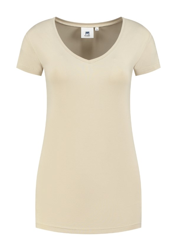 Lemon & Soda dames V-hals T-shirt met korte mouwen in meerdere kleuren. Een comfortabel T-shirt dankzij de langere lengte en het aansluitende model van de single jersey. De kleuren zijn ideaal om te bedrukken en te borduren en perfect in te zetten als werkkleding.
