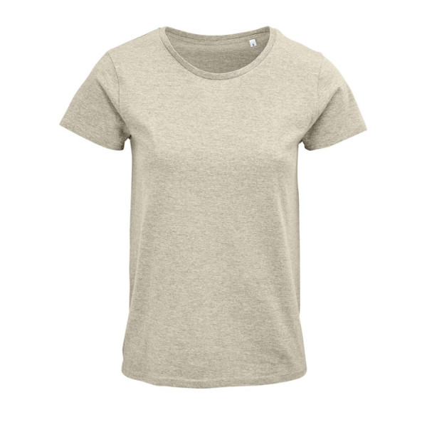 SOL'S CRUSADER WOMEN, Dames Ronde Hals Aansluitend Jersey T-Shirt, 100% Organisch Geteeld Katoen, Natuurlijke Afwerking Voor Een Zachter En Gladder Gevoel, Jersey 150, 100% Katoenen Geribbelde Kraag, Ronde Hals, Nek Tape, Aansluitende Pasvorm, Tubulair, (1) Heather Lichtgroen: 60% Organisch Katoen / 40% Gerecycled Polyester, (2) Heather Roze: 60% Organisch Katoen / 40% Gerecycled Polyester, (3) Heather Beige: 60% Organisch Katoen / 40% Gerecycled Polyester, (4) Ash: 98% Organisch Katoen / 2% Viscose, (5) Grijze Melange: 85% Organisch Katoen / 15% Viscose. Raadpleeg De Maattabel In De Productdocumentatie Voor De Juiste Maat.