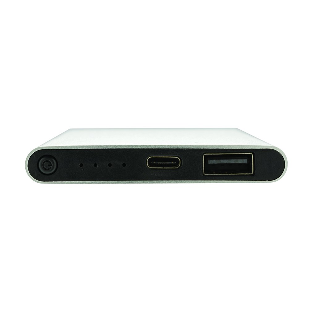 4.000 mAh powerbank met plat ontwerp, waarvan de behuizing is gemaakt van RCS-gecertificeerd gerecycled aluminium/ABS-plastic. RCS (Recycled Claim Standard) is een standaard om de gerecyclede inhoud van een product gedurende de hele toeleveringsketen te verifiëren. Totale gerecyclede inhoud: 36% op basis van het totale gewicht van het artikel. De powerbank ondersteunt opladen via zowel USB A als type C. De powerbank bevat een duurzame grade A 4.000 mAh lithium-polymeerbatterij. De energie-indicatoren geven het resterende energieniveau aan, zodat je altijd weet wanneer je moet opladen. Type-C invoer: 5V/2A; Type-C uitvoer: 5V/2A; USB A uitvoer: 5V/2A. Artikel en accessoires zijn PVC-vrij. Inclusief RCS-gecertificeerde gerecyclede TPE-oplaadkabel. Verpakt in FSC® mix verpakking