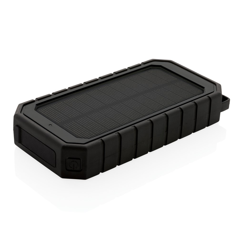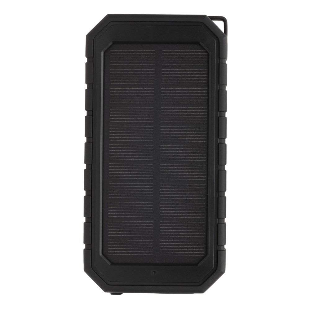 Snelle 10.000 mAh 10W draadloze powerbank op zonne-energie gemaakt met RCS (Recycled Claim Standard) gecertificeerd gerecycled ABS en TPE. Totaal gerecycled materiaal: 30% op basis van het totale gewicht van het item. RCS-certificering zorgt voor een volledig gecertificeerde toeleveringsketen van de gerecyclede materialen. De powerbank ondersteunt zowel opladen via kabel (type C en USB) als via de 10W draadloze snellader. Draadloos opladen compatibel met alle QI-apparaten zoals de nieuwste generatie Android, iPhone 8 en hoger. Het heeft een zonnepaneel samen met een zaklamp en een karabijnhaak om aan elke tas te bevestigen. IPX5 Waterdicht. Met resterende batterij-indicator. Inclusief type C laadkabel gemaakt van GRS gecertificeerd gerecycled TPE. Verpakt in FSC® mix kraft doos. USB-output 5V/2.4A; Type C Input: 5V/2.4A. Item en accessoires 100% PVC-vrij