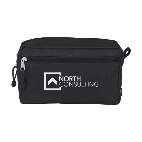 Royaal etui voor het opbergen van make-up of toiletartikelen. Gemaakt van 600D RPET polyester: gerecycled materiaal van PET-flessen en textielvezels. Met lus en extra ritsvak. GRS-gecertificeerd. Totaal gerecycled materiaal: 90%.