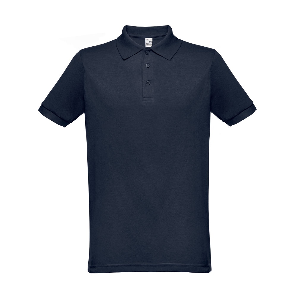 Heren poloshirt met korte mouwen van piqué mesh. 35% gekaard katoen en 65% polyester (200 g/m²). Kleur 183: 85% katoen/15% viscose. Regular fit polo met ribkraag en mouwen, de kraag is verstevigd met piqué gebreid lint. Bevat een verstevigde kraag met 3 knopen (extra knoop in de binnenzoom). Gesneden en genaaid stuk. Maten: XS, S, M, L, XL, XXL