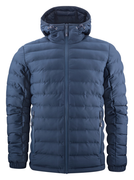 Gewatteerde winterjas. Waterdichte ritssluiting vooraan en aan de zijzakken. De zijzakken zijn aan de binnenkant afgewerkt samen met de zoom zodat deze als binnenzakken gebruikt kunnen worden. Aanpasbare drukknoopsluiting aan de manchetten. Aanpasbare capuchon met elastische trekkoorden aan de zijkanten, afgewerkt met een elastische bies aan de zoom