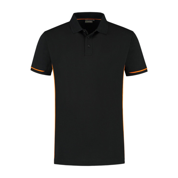 Poloshirt met contrast piping, 50% gerecycled polyester / 48% organisch katoen / 2% elastan (GRS gecertificeerd), 210 gr/m2, piqué, unisex, modern fit, korte mouw met 1x1 ribboord en contrast piping, plat gebreide kraag met 3 knoopsluiting, 3D logo transfer op onderzijde.
