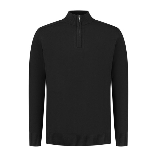 ¼-Zip Pullover, 50% Cotton / 50% Acrylic, 12 gauge breisel, +/- 445 gr/st, modern fit met opstaande kraag en verdekte metalen YKK rits. Raglanmouw inzet, mouwen met ribmanchet en tailleband in 2x2 rib.
