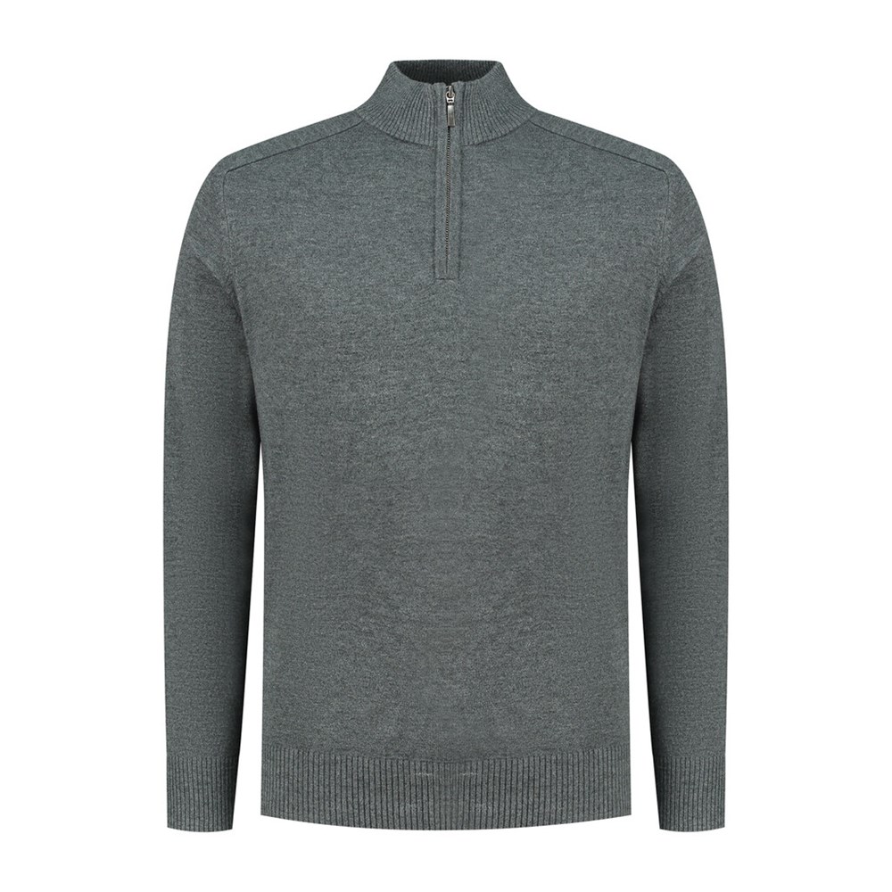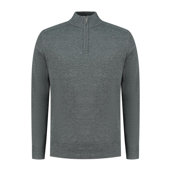 ¼-Zip Pullover, 50% Cotton / 50% Acrylic, 12 gauge breisel, +/- 445 gr/st, modern fit met opstaande kraag en verdekte metalen YKK rits. Raglanmouw inzet, mouwen met ribmanchet en tailleband in 2x2 rib.