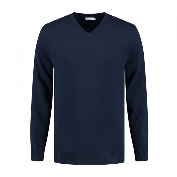 Pullover, 50% katoen, 50% acryl, 12 Gauge breisel, +/- 375 gr/st, modern fit met V-hals, mouw met ribmanchet en tailleband in 2x2 rib.