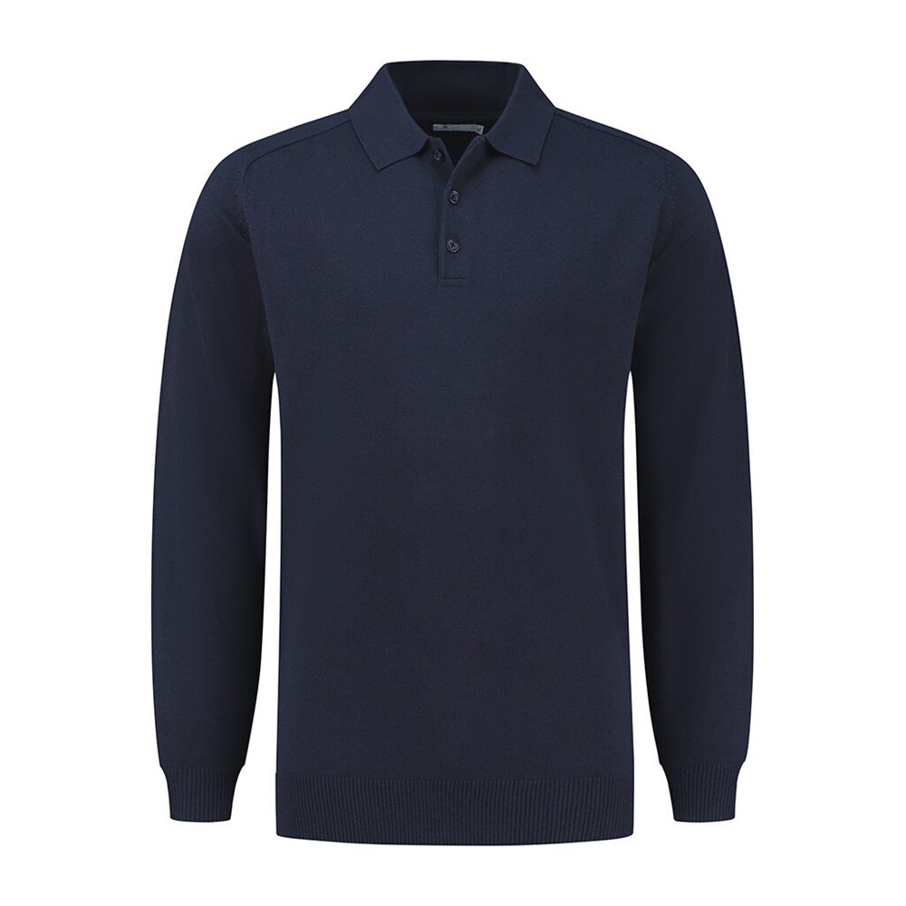 Polo pullover, 50% katoen / 50% acrylic, 12 gauge breisel, modern fit met polokraag, raglanmouw inzet, mouwen met ribmanchet en tailleband in 2x2 rib.