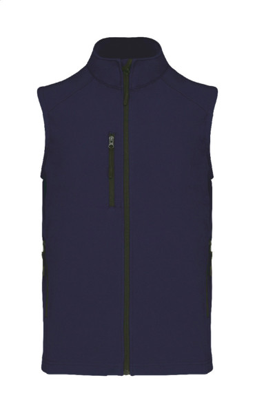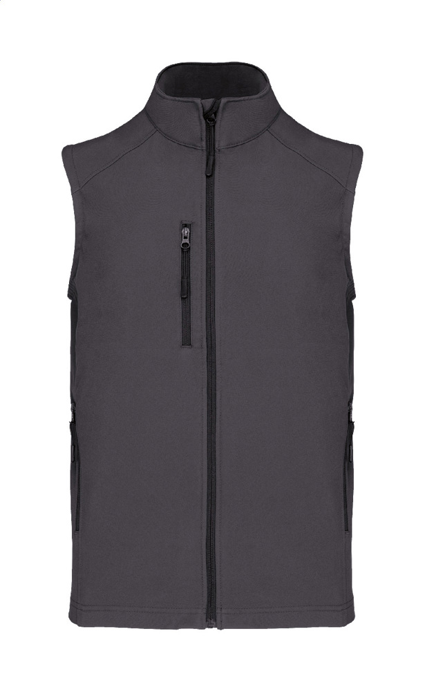 Drielaags, ademend, wind- en waterdicht softshell bodywarmervest met ritssluiting, borst en zijzakken. Met ademende middenlaag en micropolaire fleece binnenlaag. 95% polyester en 5% elastaan, 300 g/m². Product van het merk Kariban.