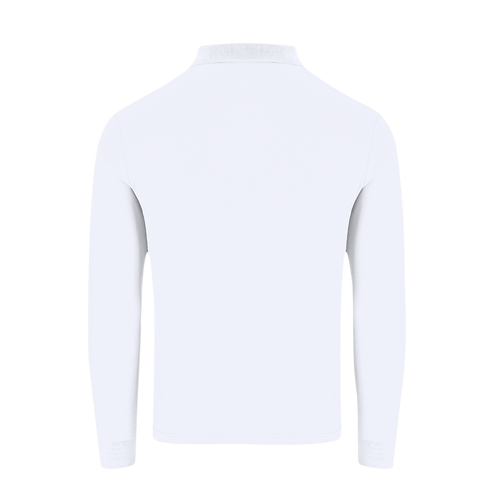 Unisex poloshirt met lange mouwen, gemaakt van piquéstof. Kraag en boorden in 1x1 rib met elastaan voor betere pasvorm en comfort. Sluiting met drie knopen in bijpassende kleur en verstevigde nektape.