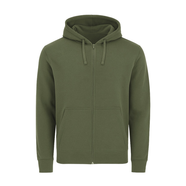 Unisex hoodie met gevoerde capuchon in bijpassende dubbele stof. Gemaakt van katoen en polyester in zacht geruwd fleece 280 g/m. Voorzien van volledige ritssluiting aan de voorkant in bijpassende kleur, verstelbaar trekkoord met bijpassende metalen oogjes, kangoeroezak, verstevigd nektape en manchetten en tailleband in 1x1 ribtricot met elastaan voor betere pasvorm en comfort.