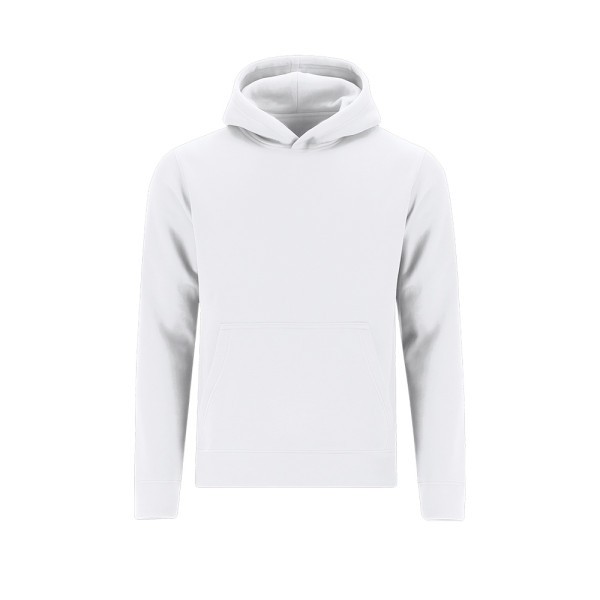 Unisex kinderhoodie met gevoerde capuchon in bijpassende dubbele stof. Gemaakt van katoen en polyester in zacht geruwd fleece 280 g/m. Voorzien van kangoeroezak, verstevigd nektape en manchetten en tailleband in 1x1 ribtricot met elastaan voor betere pasvorm en comfort.