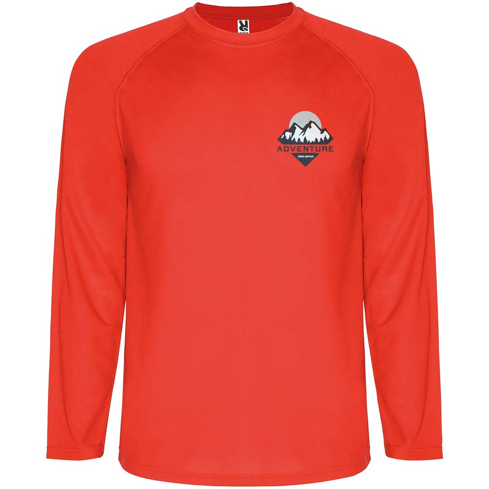 Technisch raglan t-shirt met lange mouwen. Bijpassende overlock in mouwen (zonder zijnaden). Bedekte naden in kraag. Ademende easy-wash en droge stof. Verwijderbaar label.