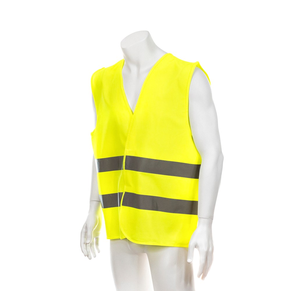 Reflecterend vest met hoge zichtbaarheid, goedgekeurd volgens de CE-veiligheidsvoorschriften. Met dubbele reflecterende strook rond het lichaam en klittenbandsluitingen. One size fits all voor volwassenen.