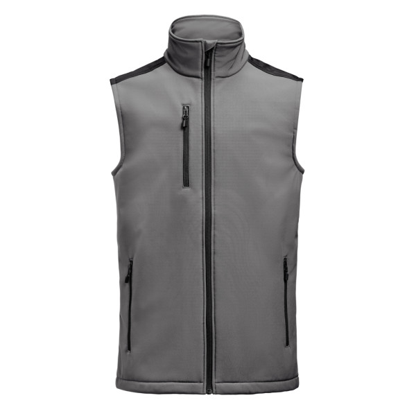Bicolor softshell bodywarmer. Contrasterende ritssluiting vooraan en aan de zijzakken. Gemaakt...meer