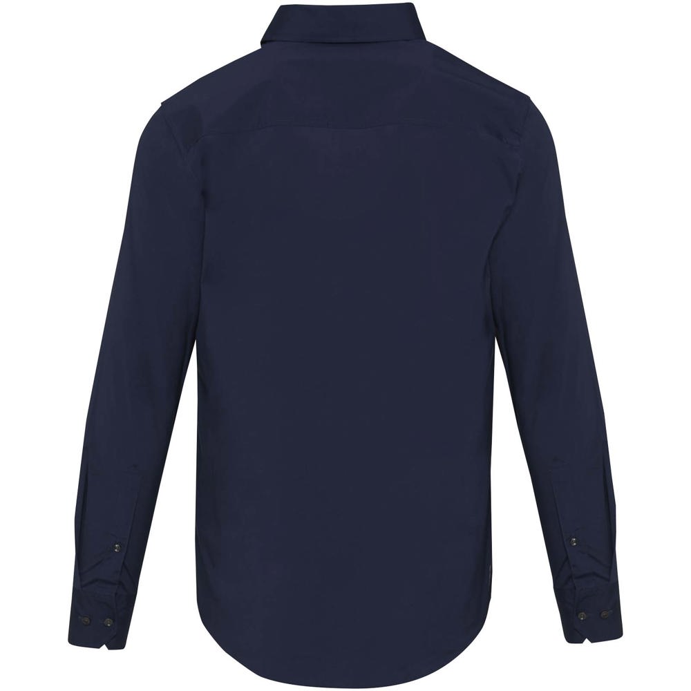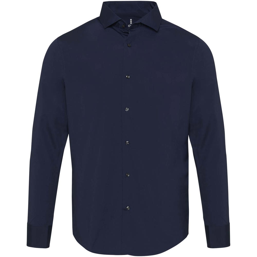 Carnelian heren poplin overhemd met lange mouwen. Moderne elegantie gecombineerd met extra draagcomfort. Gemaakt van BCI-gecertificeerd katoen met stretch, met een fijn 30-denier tweedraads gesponnen structuur voor een gladde, duurzame en luxe uitstraling. De lichte poplin binding geeft een frisse, strakke look. Regular fit voor bewegingsvrijheid en comfort. Voorzien van een klassieke rechte kraag, ideaal voor werk en casual gebruik.