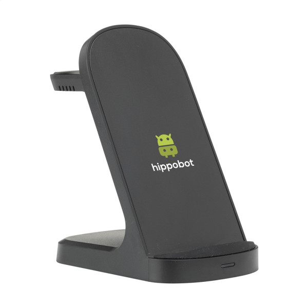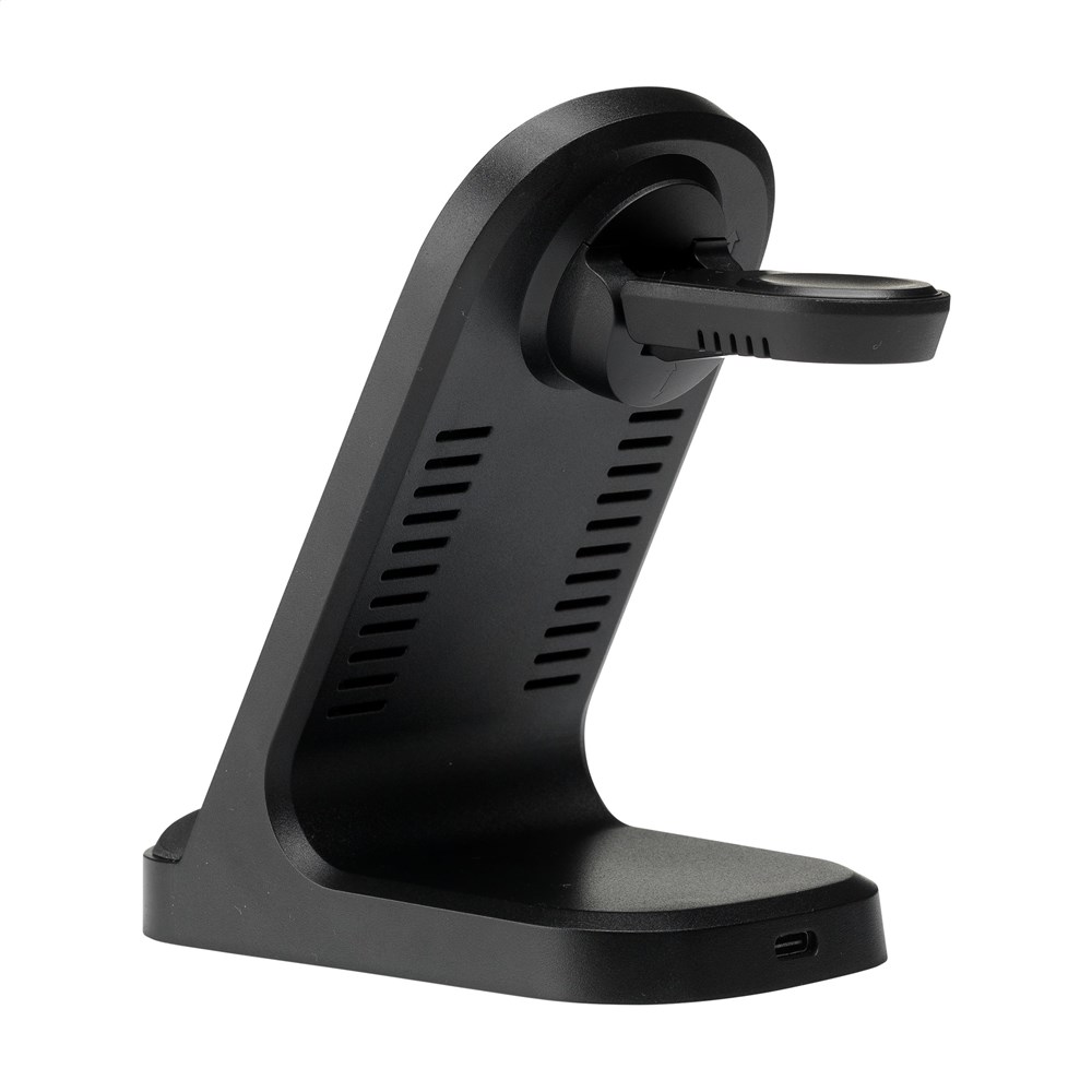 Stevige 3-in-1 oplaadstandaard van gereycled ABS. De ideale draadloze oplader voor het snel en...meer