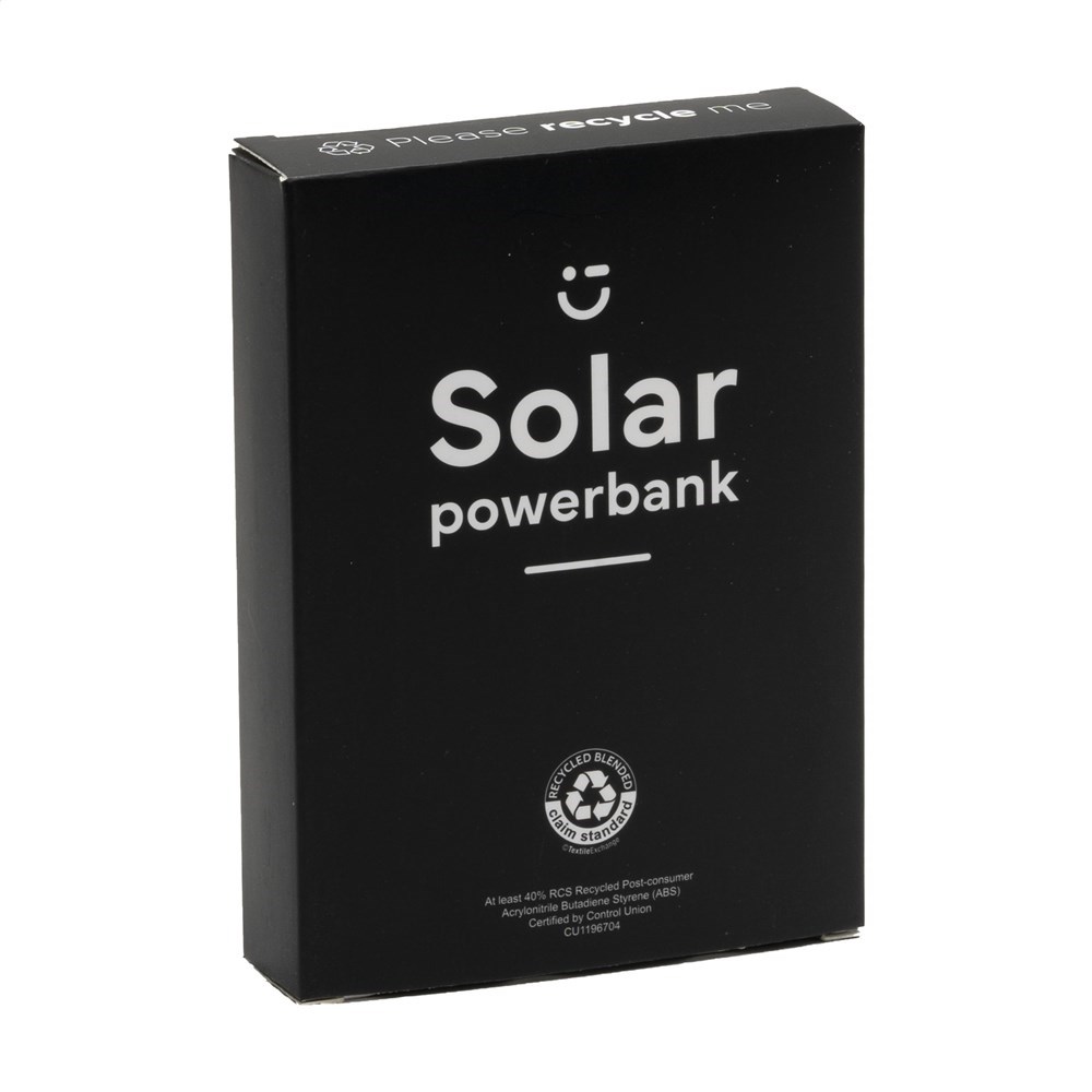 Krachtige, hoge capaciteit powerbank voorzien van solarpanel en ingebouwde, oplaadbare polymer batterij (4.000 mAh). Op te laden met zonne-energie of netstroom (d.m.v. USB poort). De behuizing is gemaakt van gerecycled ABS. Input: 5V/1A. Output: 5V/1A. Inclusief oplaadkabel met USB-C aansluiting, USB-C connector en gebruiksaanwijzing. RCS-gecertificeerd. Totaal gerecycled materiaal: 40%. Per stuk verpakt.