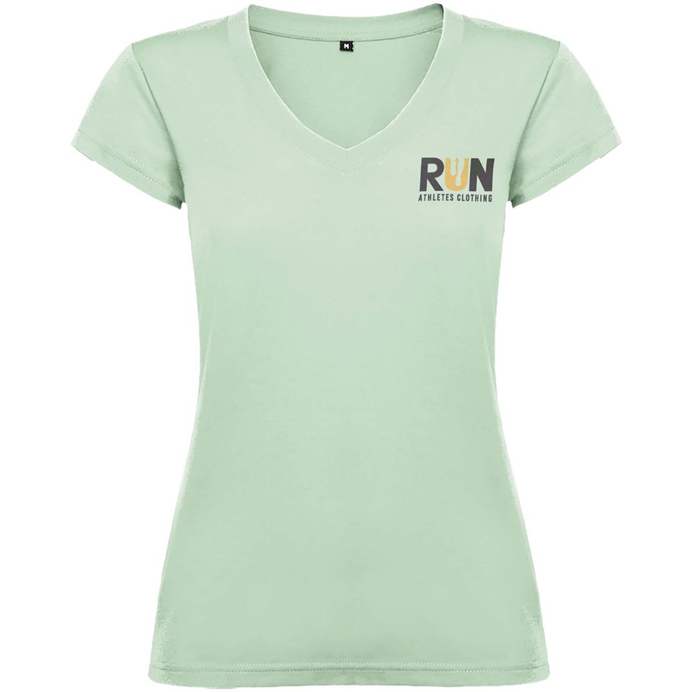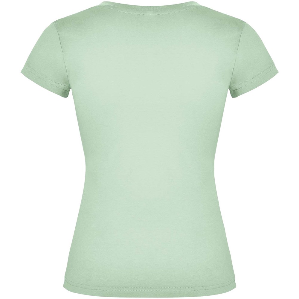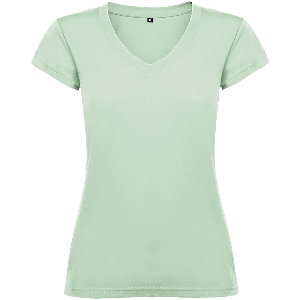 T-shirt met korte mouwen en V-hals voor dames, met 1x1 geribbelde afwerkingen. Slim-fit met zijnaden. Verwijderbaar etiket. Het model is 174 cm en draagt maat S.