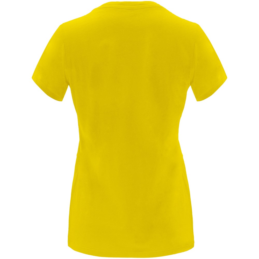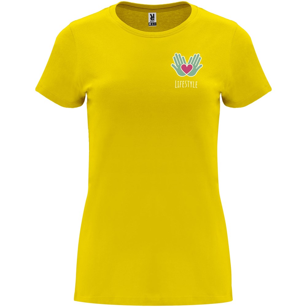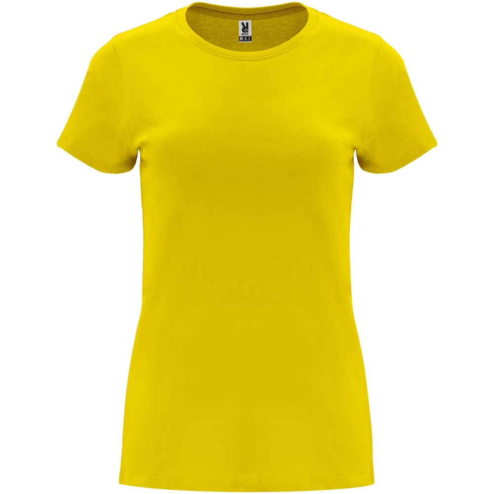 Getailleerd T-shirt met korte mouwen voor dames. 1x1 geribde ronde hals. Versterkte bedekte naden in de kraag. Verwijderbaar etiket.