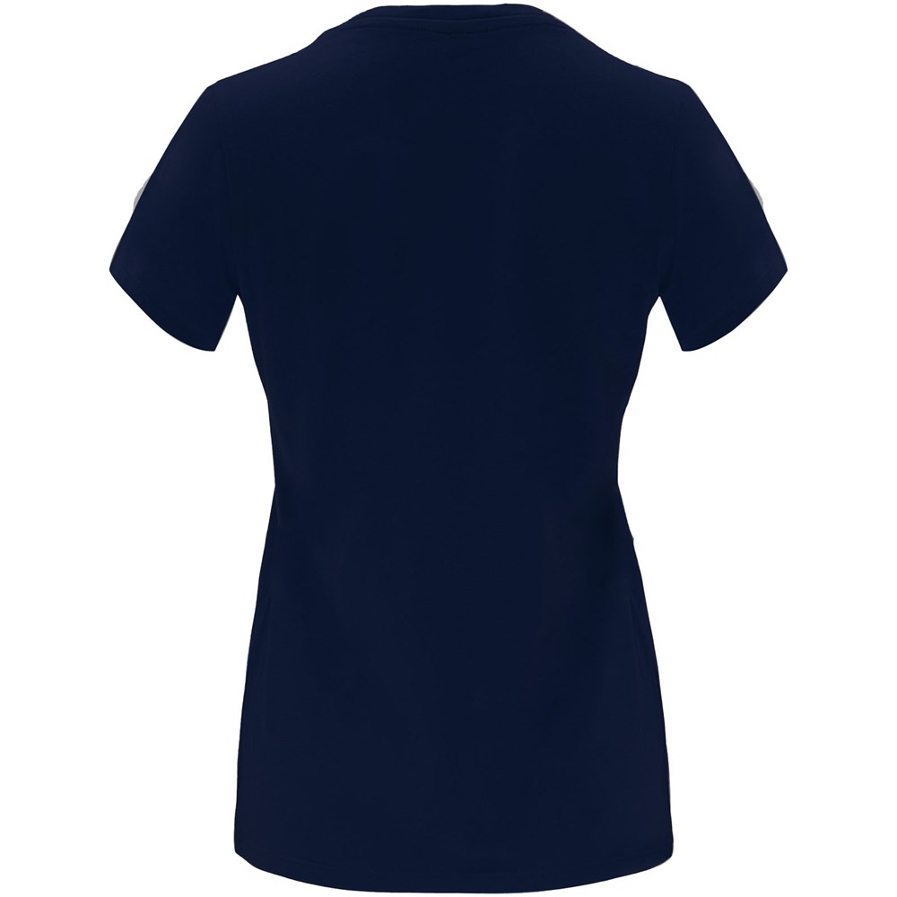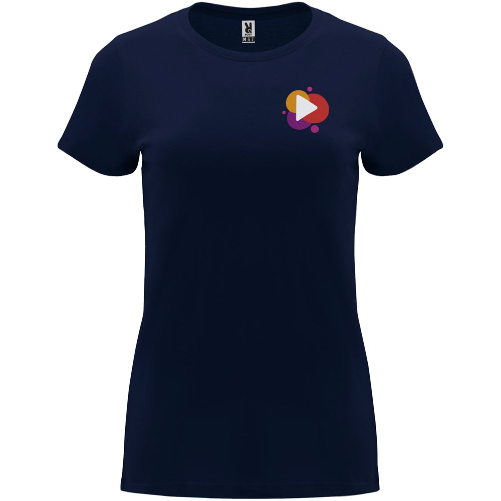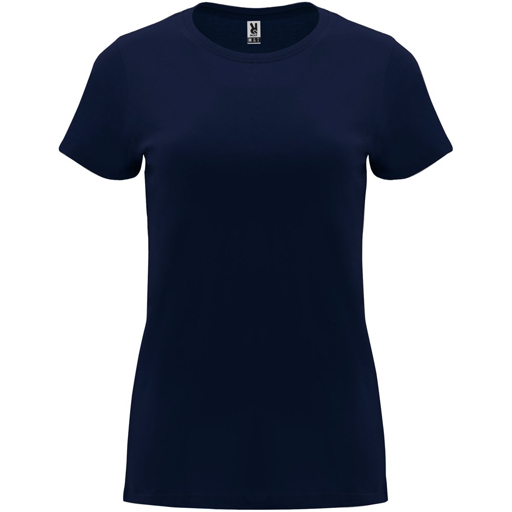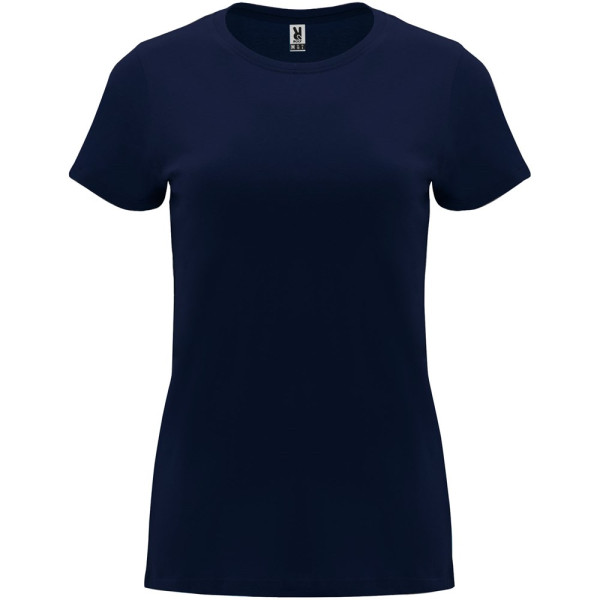 Getailleerd T-shirt met korte mouwen voor dames. 1x1 geribde ronde hals. Versterkte bedekte naden in de kraag. Verwijderbaar etiket.