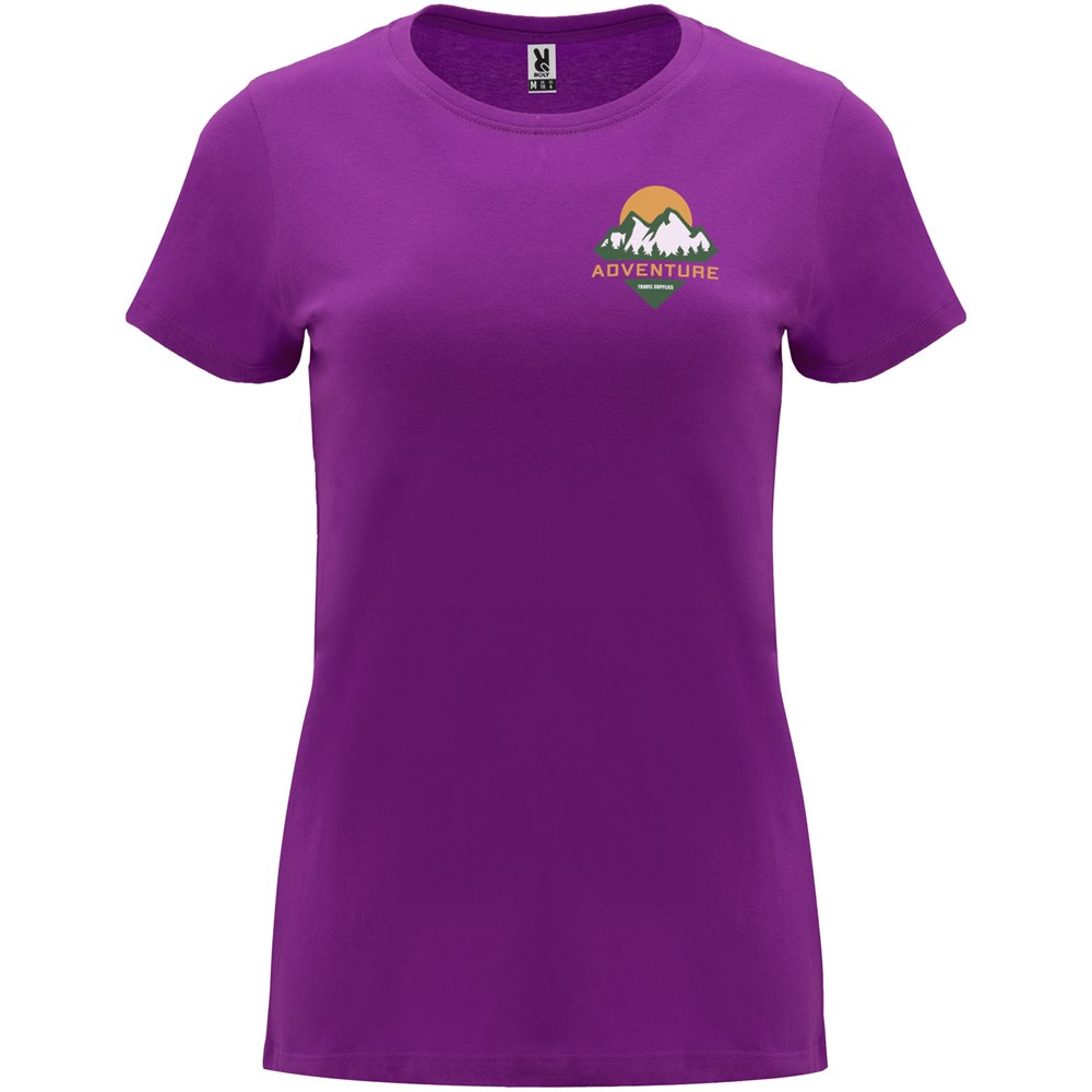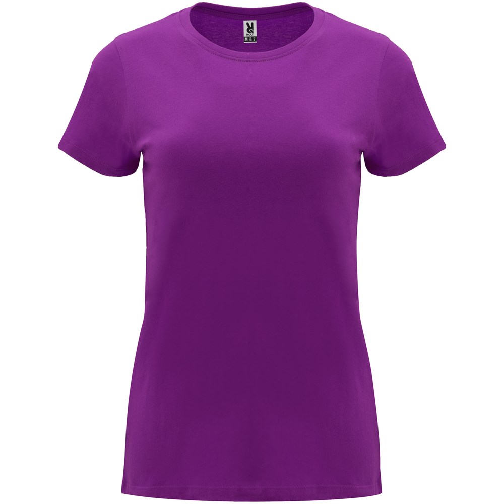 Getailleerd T-shirt met korte mouwen voor dames. 1x1 geribde ronde hals. Versterkte bedekte naden in de kraag. Verwijderbaar etiket.