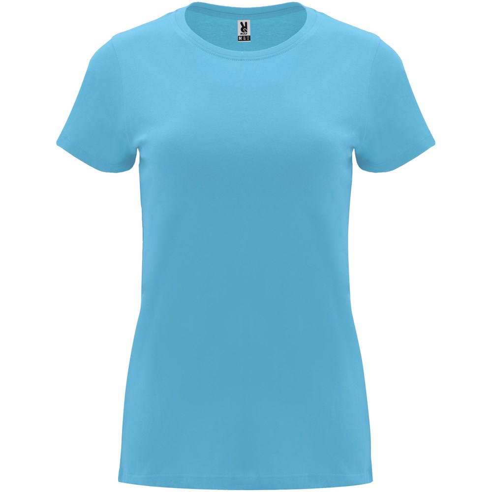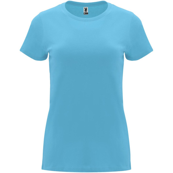 Getailleerd T-shirt met korte mouwen voor dames. 1x1 geribde ronde hals. Versterkte bedekte naden in de kraag. Verwijderbaar etiket.