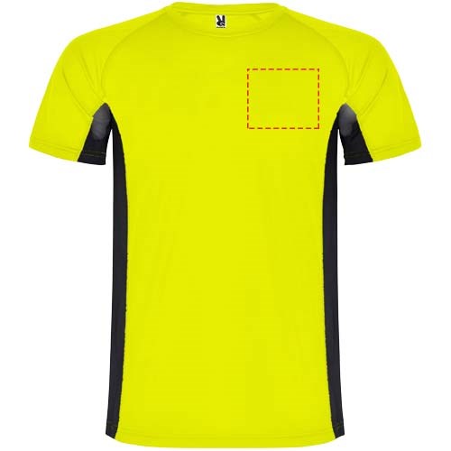 Technische en ademende stof. Een combinatie van twee polyesterstoffen: Hoofdstof van birdseye-stof, zijpanelen en binnenmouw van micro-geperforeerde stof. Ronde hals met binnenin versterkte bedekte naden. Verwijderbaar label.