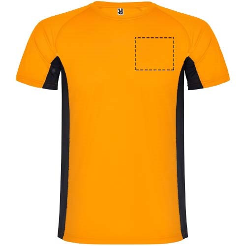 Technische en ademende stof. Een combinatie van twee polyesterstoffen: Hoofdstof van birdseye-stof, zijpanelen en binnenmouw van micro-geperforeerde stof. Ronde hals met binnenin versterkte bedekte naden. Verwijderbaar label.
