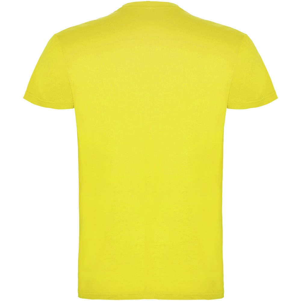 T-shirt met korte mouwen en dubbellaagse ronde hals van elastaan, gemaakt van buisvormige stof voor volwassenen. Versterkte bedekte naden in de kraag. Verwijderbaar etiket. Het model is 190 cm en draagt maat L.