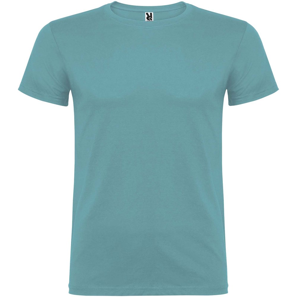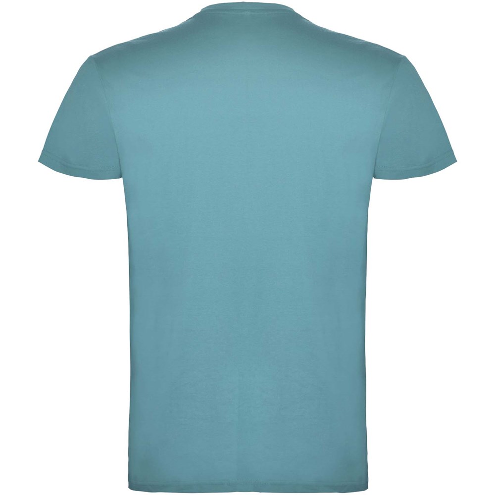T-shirt met korte mouwen en dubbellaagse ronde hals van elastaan, gemaakt van buisvormige stof voor volwassenen. Versterkte bedekte naden in de kraag. Verwijderbaar etiket. Het model is 190 cm en draagt maat L.